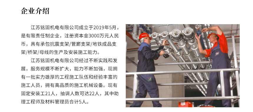 江苏铭固工程安装部概述
